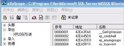 拿起eXeScope我分析了一下xplog70.dll这个文件,哈哈,看到不少好东西打开X:Program FilesMicrosoft SQL ServerMSSQLBinn目录
