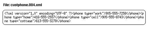 前面例子中的 XQuery 返回存储在 CUSTOMER 表的 XML 列 INFO 下的每个客户的电话号码。这里讨论的所有 XML 选项和修饰符都适用于 XQuery 语句。因此,这个例子将为 XQuery 的每个结果生成单独的 XML 文档。这个文件存放在 d:\xmlpath 中,并且以 custphone.ext.xml 命名,其中 ext 是一个序列号。此外,文档中不包括 XML 声明标记。
