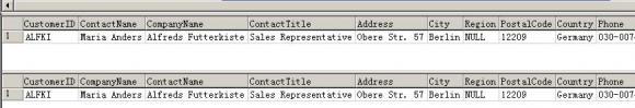 这个时候,当我们再次使用视图vCustomersB查询客户ID为ALFKI的资料的时候,错误已经悄然来临,你注意到了吗?让我们来看一下这两个视图的查询结果吧,查询语句如下: