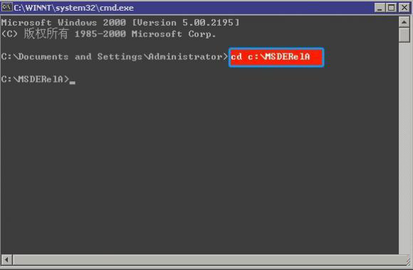 按“开始/运行”,输入 “CMD” 回车,打开命令符窗口。输入以下命令进入 C:\MSDERelA