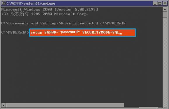 输入命令 setup SAPWD="password" SECURITYMODE=SQL 。其中 "password" 部分是为系统管理员 sa 设置的密码;而 SECURITYMODE=SQL 是告诉安装程序为 SQL 数据库设置混合验证模式。