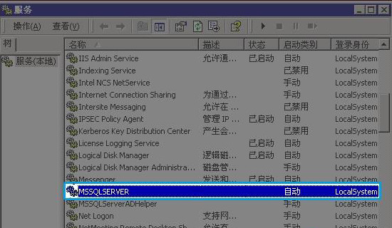 如果重启后 SQL 服务没有自动启动,您可以到系统的服务管理控制台中(点击“开始/运行”,输入“services.msc”),找到 "MSSQLSERVER" 项,手工启动该服务。