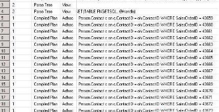 运行查询之后,我们可以从下面的图中看到,每一个查询执行都在内存中存储了一个非常具体的计划,该计划没有参数化,也没有被数据库引擎重新利用。因为这些计划是如此的具体,所以任何这些计划能够被重新使用的可能性很小。很容易看到,如果这是一个使用频率非常高的应用程序,那么服务器内存会很快地消耗。