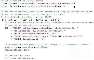 现在将调整Java代码来准备这个查询语句。在执行之前,我通过命令DBCC FREEPROCCACHE清除该计划缓存,接着通过一个准备好的语句重新运行java class: