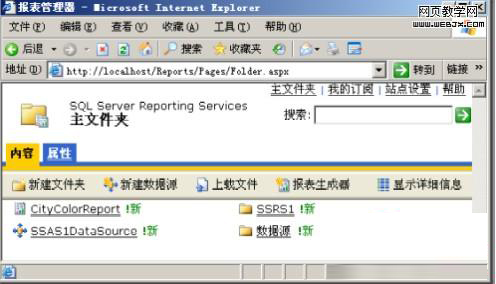 (6)确认报表服务已经运行了,然后访问http://localhost/Reports/Home.aspx 即可看到报表服务的管理界面: