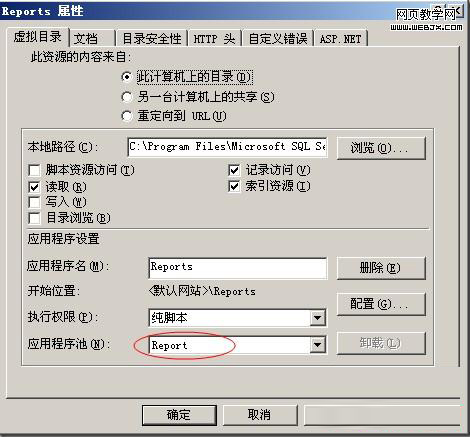 (4)修改Reports的属性,将应用程序池修改为前面创建的Report,如图: