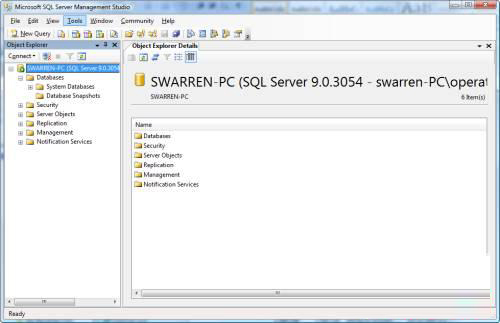 选择SQL Server管理工具出现主界面,它是用来恢复备份数据库的主要工作区。