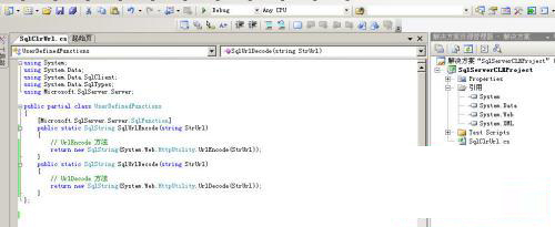 该功能虽然只在数据库实现了Server.UrlEncode、Server.UrlDecode,但它告诉我们如何在SQL 2005调用.Net Framwork中的方法,来实现强大的数据库CLR功能。类似在SQL 2005 中很难实现的功能,参考上述办法,调用.Net Framwork提供的强大类库,就可以实现复杂的数据库功能。