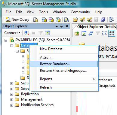 注意:我们将假定你已经知道如何备份一个SQL Server数据库且已经将备份数据库放在了一台文件服务器上或将备份拷贝到一台新的服务器上。我们将基于这一点进行介绍。