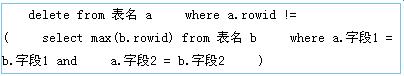 delete from 表名 a where 字段1,字段2 in (select 字段1,字段2,count(*) from 表名 group by 字段1,字段2 having count(*) > 1)