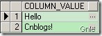 select * from table(splitstr('Hello,Cnblogs!',','));