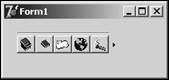 在窗体中添加一个TImageList组件,并且为它添加几个图像文件。然后添加一个TToolBar组件,设置TToolBar组件的Images属性为TImageList组件,在TToolBar组件上右击,在弹出的快捷菜单中选择New Button项,为TToolBar组件添加几个按钮,并设置按钮的ImageIndex属性分别对应TImageList组件中的图像索引编号。最后向窗体上添加一个TPageScroller组件,设置它的AutoScroll属性值为True,设置Control属性为TToolBar组件,如果TToolBar组件的尺寸大于TPageScroller组件的尺寸,就会显示一个按钮。