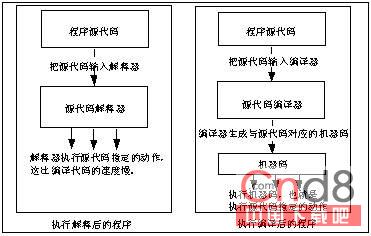 这个规则的一个例外是Java,它是一种相当新的语言,它具有C++的许多特性。由于Java主要用于在不同计算机之间移植以及用在Internet上,所以它基本上是一种解释性的语言。尽管如此,还有一种just-in-time编译器可以在执行过程中,为Java源代码生成对应的机器码,从而大大提高了执行速度。