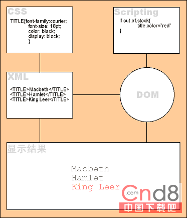 XML创建了标识,而DOM的作用就是告诉script如何在浏览器窗口中操作和显示这些标识