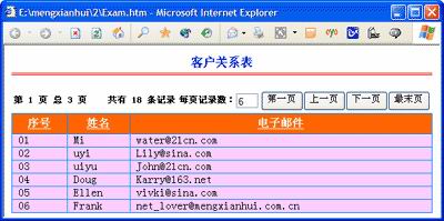 在Web开发中我们经常会遇到分页显示和排序数据记录集的情况这在服务器端使用服务器端的代码和数据库技术是件很轻松的事情,比如:ASP、PHP、JSP等然而,如果要在客户端显示多条记录并且排序是一件很令人头疼的事情下面,我们利用Extensible Markup Language(XML,可扩展标记语言)和Extensible Stylesheet Language Transformations(XSLT,可扩展样式单语言转换),并结合XML Path Language(XPath,XML路径语言),只需要编写简单的代码,就可轻松实现。这种方法避免了与服务器频繁打交道的过程,节省了数据显示的时间,浏览者无须等待就可以看到结果,也可以减少服务器的负担。另外。由于XML和XSLT技术,使数据存储和数据显示分离,还可以让我们的代码能够重复利用,大大减轻了程序员编写代码的负担。