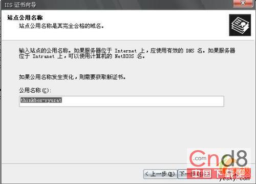 注意:公共名称必须填写为访问站点的域名,如:要想用下面的地址访问Web Service,https://192.168.1.179/..,则此处必须填写"192.168.1.179”,否则将提示使用了不安全的证书,导致站点无法访问。将此步骤设置好以后,一路next即可。