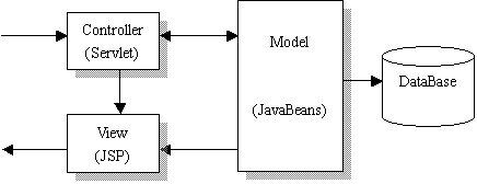 设计模式是面向对象的程序设计人员用来解决编程问题的一种形式化表示。目前,在大多数Browser/Server结构的Web应用中,浏览器直接通过HTML或者JSP的形式与用户交互,响应用户的请求。虽然很直观,但是大多数管理信息系统操作的数据量都是惊人的,随着代码的增多会使JSP页面臃肿不堪,Web服务器的负荷过重。因此,在中间层上采用基于模型视图控制器(MVC.Model-View-Controller)的设计模式。Model层用来实现业务逻辑,View层用来显示用户界面,Controller层主要负责View层和Model层之间的控制关系。具体实现时,把Servlet用作应用程序的控制器,把JSP文档作为视图,JavaBeans被用来表示模型。所有的请求都被发送给作为控制器的Servlet,它接受请求,并根据请求信息将它们分发给适当的JSP来响应。同时,Servlet还根据JSP的需求生成JavaBeans的实例并输出给JSP环境。JSP可以通过直接调用方法或使用UseBean的自定义标签得到JavaBeans中的数据。这种设计模式很好地实现了数据层与表示层的分离,使开发工作更加容易和迅速。在这种设计模式下,各层次之间的数据传递如图2。