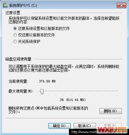 选择前两个设置一定需要注意,最下面的是调整还原点占用磁盘空间使用量,一般默认的就可以了,如果空间使用完,系统会自动删除较旧的一个,即使自己不创建,系统也会间隔7天左右或在每次安装程序、驱动时候自动创建一个还原点。