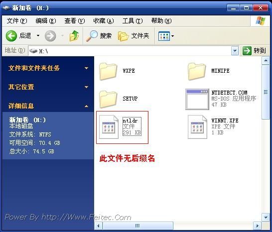 (3)、将WXPE文件夹下的NTDETECT.COM和SETUPLDR.BIN复制到移动硬盘根目录下,同时将SETUPLDR.BIN文件改名为NTLDR(注意无后缀名),(见图2)