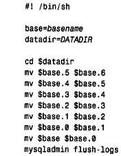 执行常规日志循环的脚本类似如下(可修改它来反映您的日志基名和数据目录的位置,或许还有希望保留的旧日志的数量):