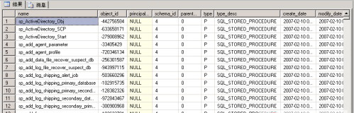 SQL Server 2005实际上保存了所有存储过程的列表,包括有文档的、无文档的,甚至是用户自定义的!所有这些信息,都包含在系统表中。最简单的方法是使用一个系统视图,特别是sys.all_objects这个视图来查阅。