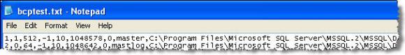 下面是一个示例命令它将把系统文件表的结果输出到以逗号分割的文件bcptest.txt中。只需复制并把它粘贴到一个查询窗口中且执行这个查询。