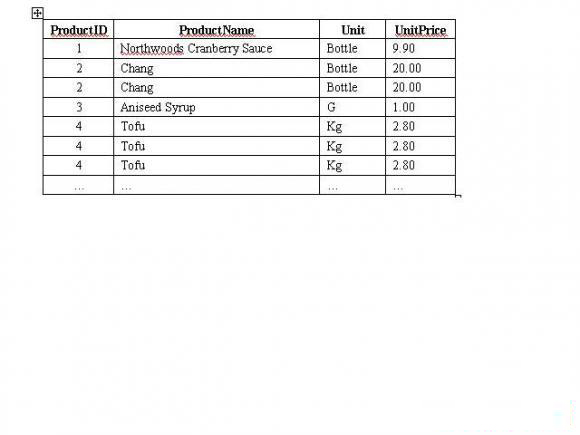 殊不知在SQL Server中有一种更为简单的方法,它不需要用游标,只要写一句简单插入语句就能实现删除重复记录的功能。为了能清楚地表述,我们首先假设存在一个产品信息表Products,其表结构如下: