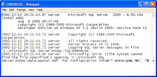 作为一名微软SQL Server的管理员,您必须知道如何修复一个崩溃的主数据库。主数据库保存有您的登录信息,以及最重要的、指向您所有数据库的指针。如果没有主数据库,您就无法成功地启动SQL Server。在本文里,我将向您介绍在发生崩溃的情况下如何修复主数据库,并告诉您如何重建主数据库,如果有必要的话。